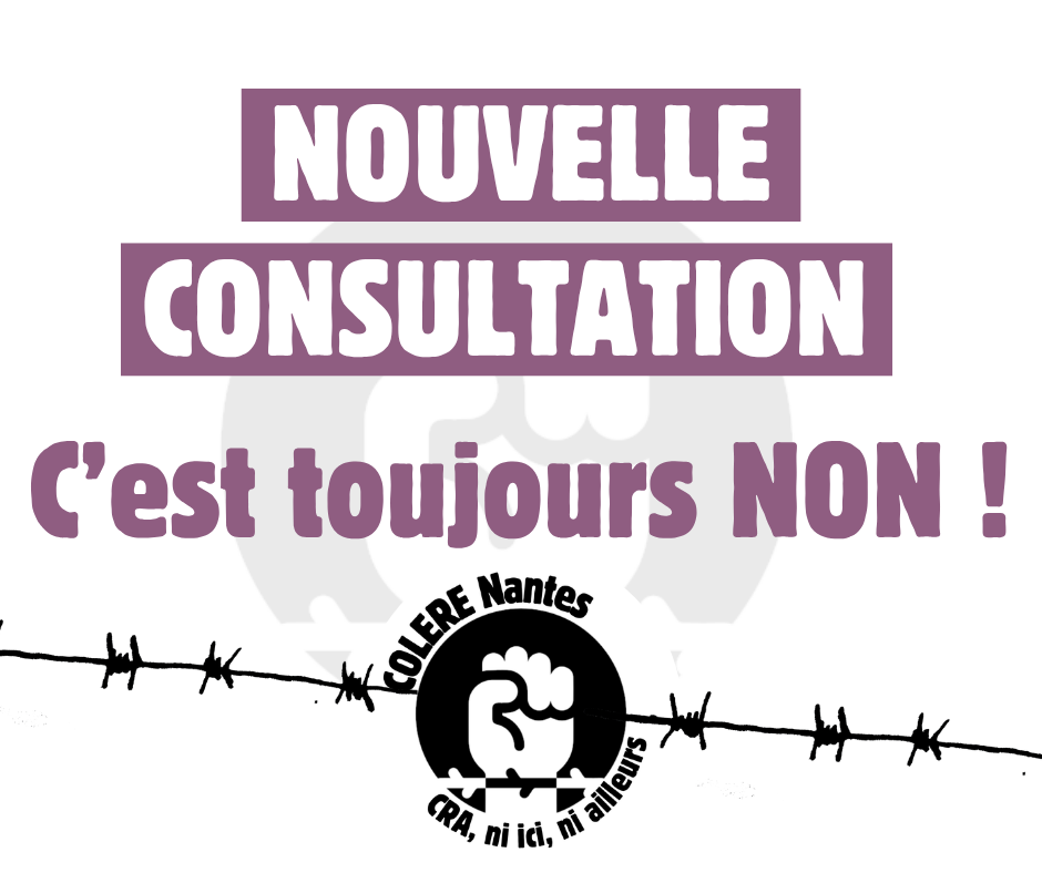 La préfecture de Loire-Atlantique lance une seconde consultation publique du 23 avril au 23 juillet 2026 sur le projet de Centre de Rétention Administrative (CRA). La première lui était nécessaire pour qualifier le projet d’intérêt général. La seconde pour obtenir l’autorisation environnementale. Une nouvelle fois, COLERE Nantes appelle à exprimer massivement notre opposition au CRA à travers cette simulation démocratique.